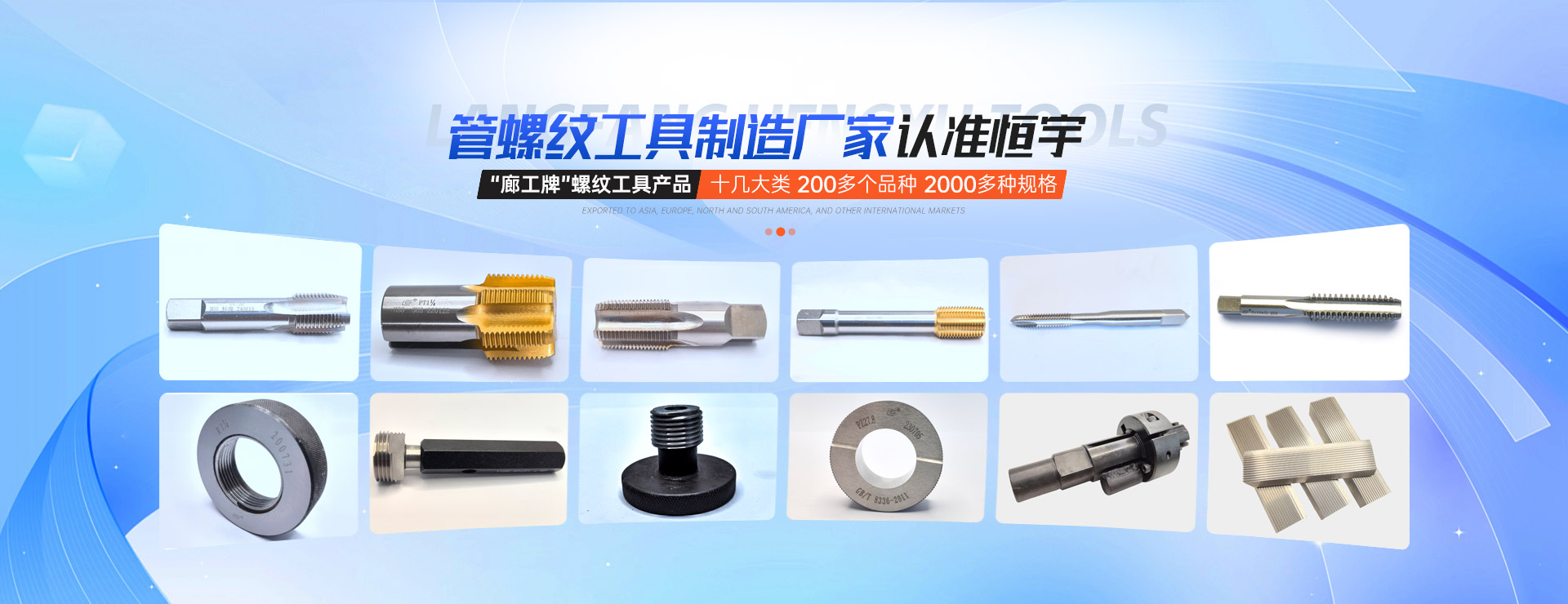 “廊工牌”螺紋工具產(chǎn)品,包括英標、美標、德標管螺紋絲錐、公制螺紋絲錐、螺旋槽絲錐、擠壓絲錐、螺尖絲錐、板牙片及專用量具、檢具和其它與螺紋加工相關(guān)聯(lián)的專用設(shè)備,共十幾大類、200 多個品種、2000 多種規(guī)格